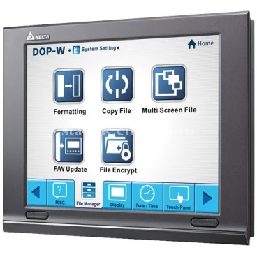 Серия DOP-W представляет собой панели оператора с большим размером сенсорного экрана - 10.4”, 12” или 15” - и обладают высоким разрешением и повышенной яркостью. С процессором последнего поколения Cortex-A8, обладающим тактовой частотой 1 ГГц, панели серии DOP-W обеспечивают высокую производительность и малое время отклика. Прочный алюминиевый корпус обладает высокой виброустойчивостью и повышенной защитой от колебаний температуры внешней среды, что в сочетании с водонепроницаемой защитой передней панели позволяет эксплуатировать сенсорные панели оператора DOP-W в жестких условиях. Встроенные динамики увеличивают возможности применения данных панелей. Сенсорные терминалы серии DOP-W имеют сертификаты по стандартам CE и UL и представляют собой конкурентоспособное, выгодное решение для визуализации и управления в различных задачах широкого спектра промышленных и бытовых применений, в т.ч. в системе «умный дом».